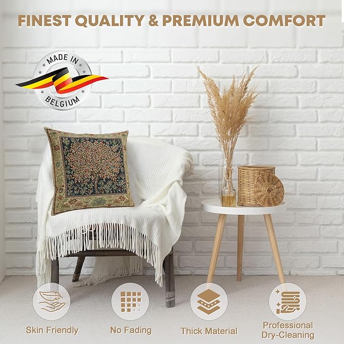 - Impeccable Craftsmanship: Are you searching for the perfect ambiance for your loved ones? Say goodbye to the crappy throw pillow cover and experience the epitome of Jacquard fabric decorative pillow covers made with high-quality 100% cotton. Elevate the aesthetics of your living space using our green pastel tapestry pillow covers. Impress your guests with our carefully crafted handmade covers, created by artisans in Belgium on woven panels to add splendid details to your decor