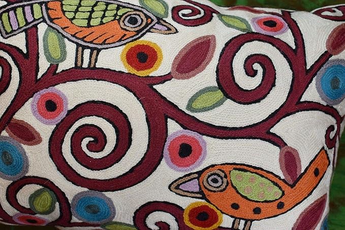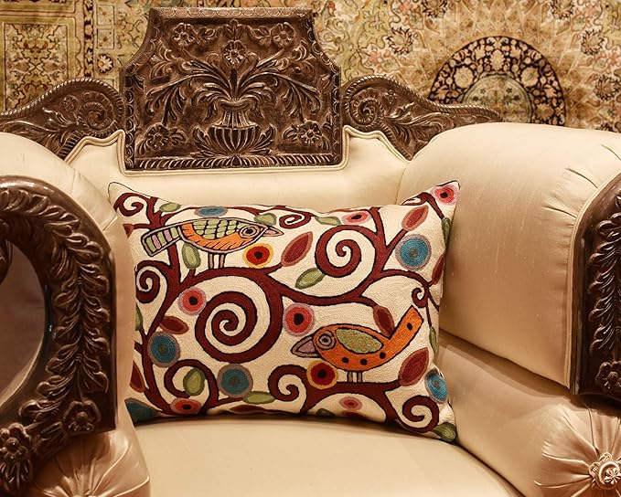 - ❤ REFRESH YOUR HOME OR OFFICE DECOR: These unique abstract Lumbar Birds Tree of Life Ivory Accent throw pillow covers would bring together the artistic elements of any room, creating a harmonious design and perfect air of sophistication. Pillow Cover Size: 14" x 20". Pillow Cover is not Reversible, Backing: Canvas (See additional Pictures). The whole front of this contemporary pillow cover is covered with hand embroidery.