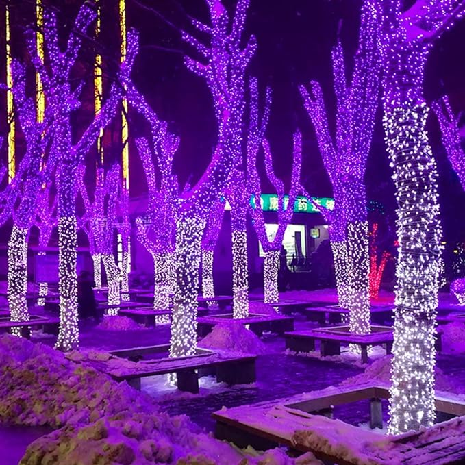 - 66ft Christmas string lights with 200 purple individual LED bulbs. Each Christmas lights has end-to-end connection, you can connect up to 4 sets together to illuminate a wider range.