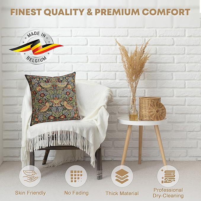 - Impeccable Craftsmanship: Are you searching for the perfect ambiance for your loved ones? Say goodbye to the crappy throw pillow cover and experience the epitome of Jacquard fabric decorative pillow covers made with high-quality 100% cotton. Elevate the aesthetics of your living space using our blue strawberry tapestry pillow covers. Impress your guests with our carefully crafted handmade covers, created by artisans in Belgium on woven panels to add splendid details to your decor