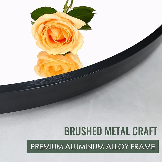 - Modern Brushed Frame Design: 36-inch black circle mirror is crafted of an aluminum alloy metal sleek frame, making it ideal for bathroom mirror, entrance mirror, vanity mirror, living room mirror