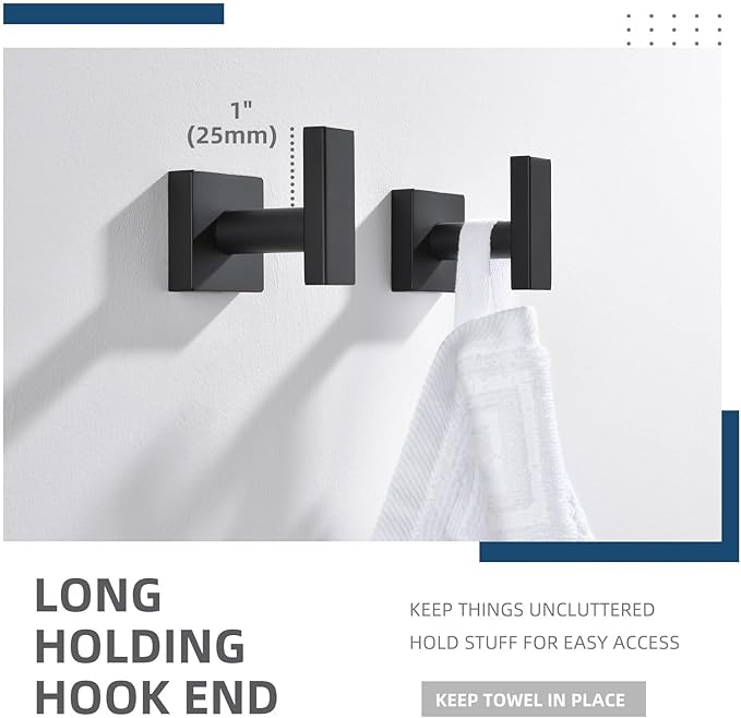 - QUICK DRYING & FIRM MOUNTING: leaves space for drying out towels but not protrude out too far from the wall, secure with no wobble under proper installation, dimension (L*D*H): 1-3/4" x 2-3/8" x 2-1/4"
