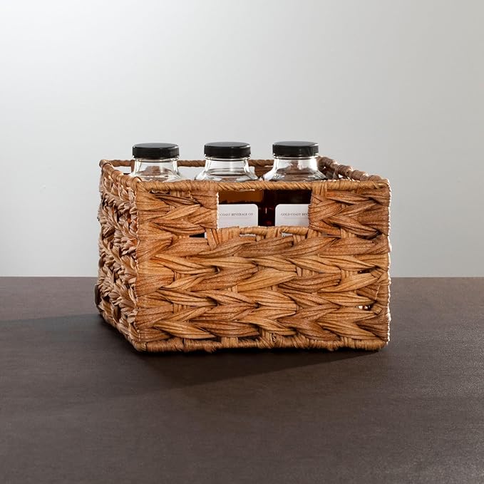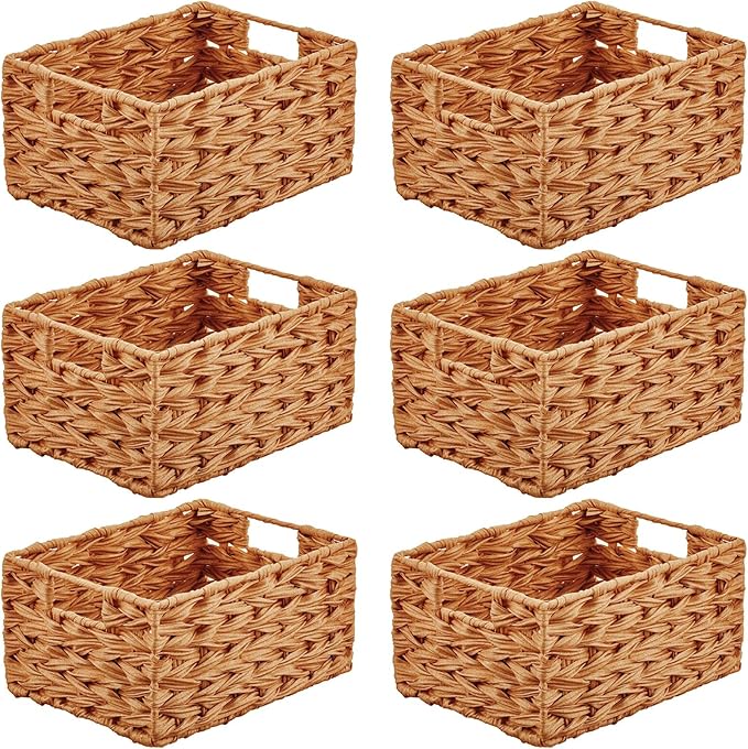 - INSTANT ORGANIZATION: These large woven storage bins keep home clutter under control by storing all of your pantry essentials; Great for storing dry goods, holds canned goods, soups, food packets, seasonings, baking supplies, snack bags, boxed foods, soda pop bottles, sports, and energy drinks; Use side by side to create the storage solution that works best for you; These beautiful baskets are perfect for pantry shelving and countertops; Set of 6