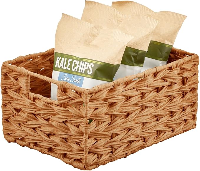 mDesign Woven Farmhouse Kitchen Pantry Food Storage Organizer Basket Bin Box - Container Organization for Cabinets, Cupboards, Shelves, Countertops - Store Potatoes, Onions, Fruit, 6 Pack, Camel Brown