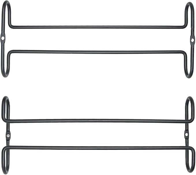10 Inch Wine Glass Rack Under Cabinet Shelf Stemware Storage Hanging Hanger Organizer Glasses Holder with Drying Under Counter Metal for Kitchen and Bar Set of 4 Black