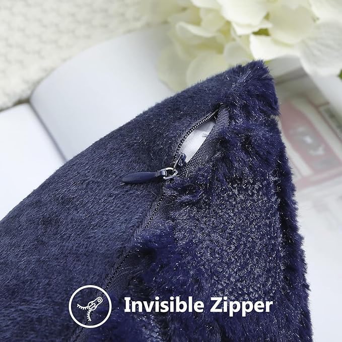 decorUhome Fall Throw Pillow Covers 20x20 Inch Set of 2, Soft Plush Decorative Faux Fur Navy Blue Solid Couch Pillow Covers, Accent Farmhouse Neutral Square Euro Pillow Cases for Sofa Bed Living Room