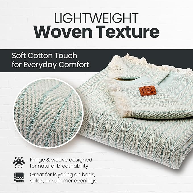 - LIGHTWEIGHT LAYERS FOR RELAXED MOMENTS: Woven from 100% recycled Turkish cotton, this breathable and cute throw blanket adds a soft, textured touch to your space; made for layering on the couch, tossing over your shoulders, or adding a laid-back look to your decor