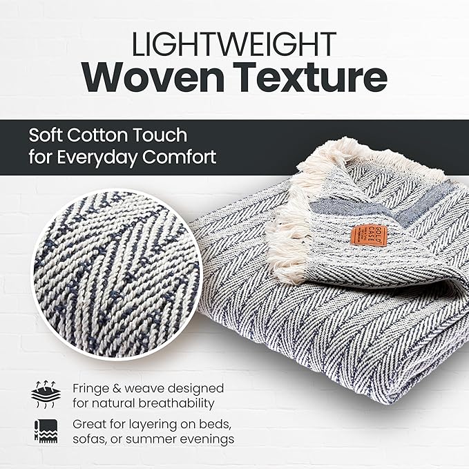 - LIGHTWEIGHT LAYERS FOR RELAXED MOMENTS: Woven from 100% recycled Turkish cotton, this breathable and cute throw blanket adds a soft, textured touch to your space; made for layering on the couch, tossing over your shoulders, or adding a laid-back look to your decor