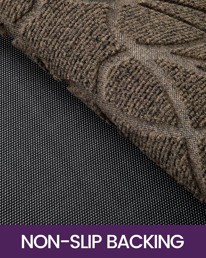 DEXI Front Door Mat Outside Entrance, Heavy Duty Non Slip Low Profile Doormat for Entryway, Trap Dirt and Moisture Welcome Mats, Easy Clean, Patio, Garage, 4x2, Brown