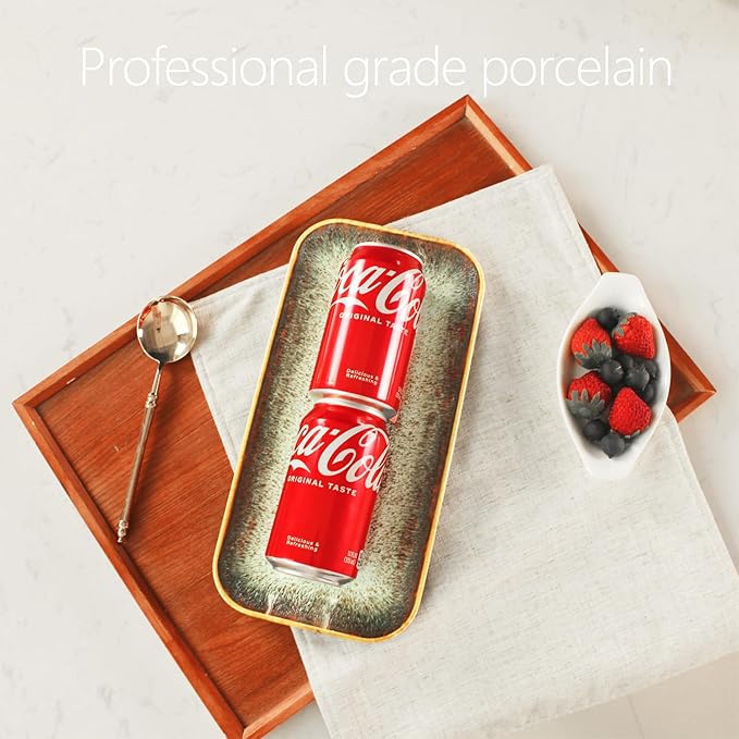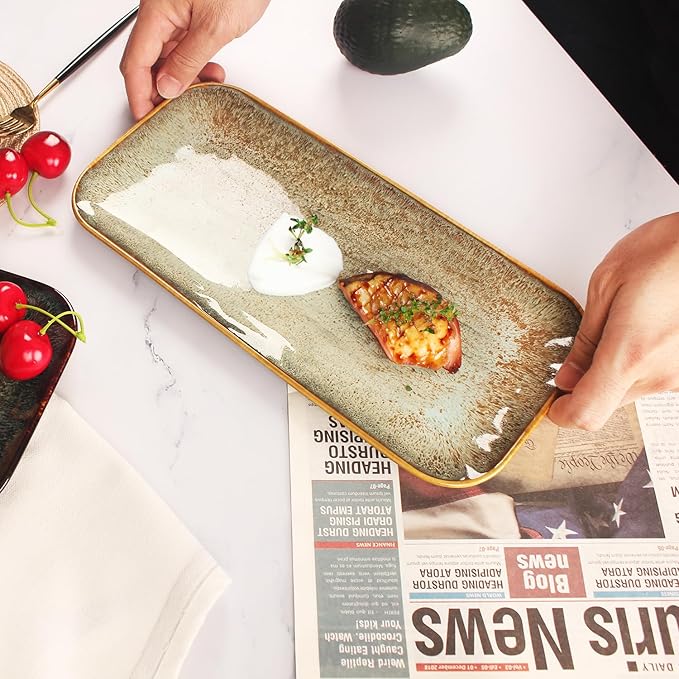 Ceramic Dinner Plates Dish Set, Set of 4, Microwave Oven and Dishwasher Safe,Scratch Resistant, Dinnerware Kitchen Porcelain Serving Dishes Brown glaze change, 12.4 Inch Rectangle plate
