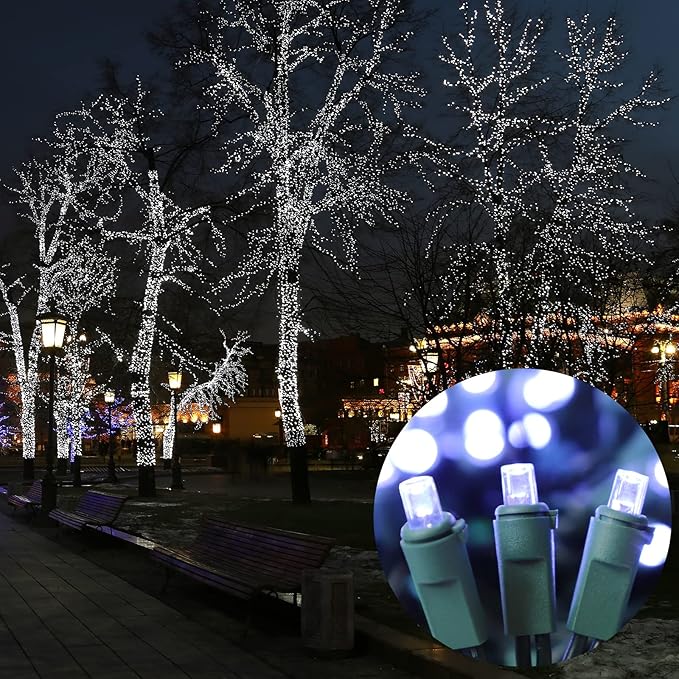 - Safe to use: Just plug or unplug to turn the light on or off. There is a fuse inside the plug to protect the lamp from burning out. UL588 safety certification, you can rest assured to use, very safe.The little bulbs in green wire color create a 360-degree flash that's super bright and festive, brightening up your holiday with warm sunlight and enough brightness.