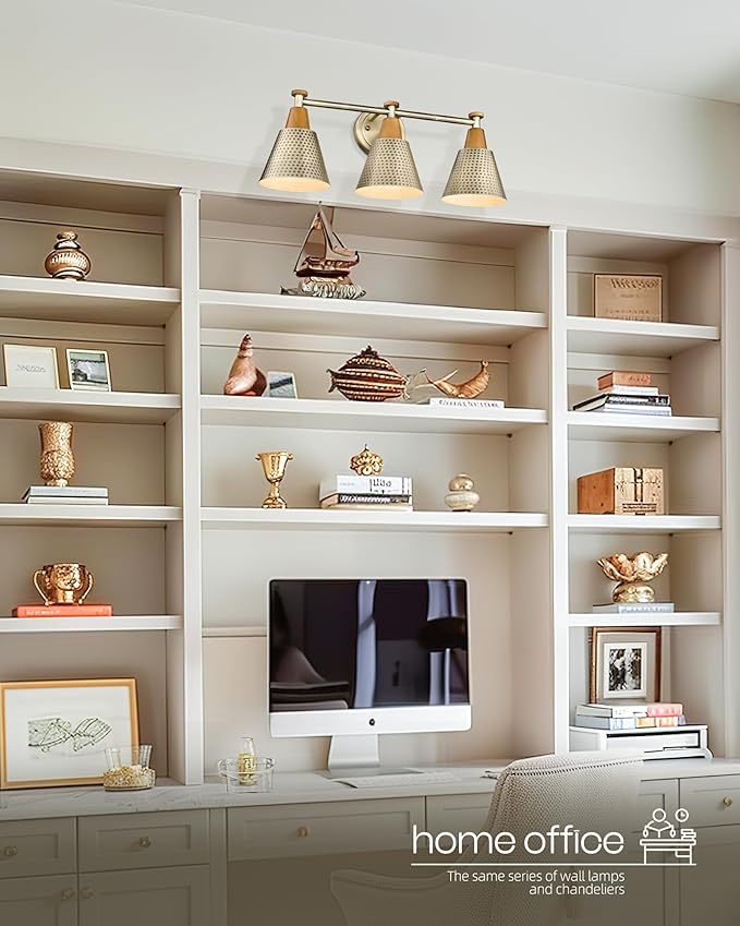 FEMILA Antique Brass Bathroom Vanity Light, 3-Lights Industrial Modern Wall Sconce Bathroom Lighting, Hammered Metal Shade Finish, 4FG59B-3W BG