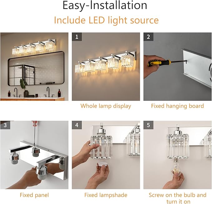 - [Easy Installation] This is designed for American Standard junction boxes and does not require complicated installation procedures. All required parts are included in the package and extra replacement crystal strips are available. Note: For your safety, please install the vanity light under the guidance of an electrician.