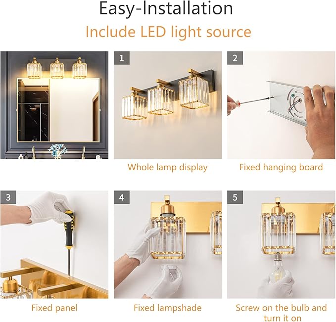 - [Easy Installation] This is designed for American Standard junction boxes and does not require complicated installation procedures. All required parts are included in the package and extra replacement crystal strips are available. Note: For your safety, please install the vanity light under the guidance of an electrician.