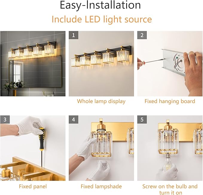 - [Easy Installation] This is designed for American Standard junction boxes and does not require complicated installation procedures. All required parts are included in the package and extra replacement crystal strips are available. Note: For your safety, please install the vanity light under the guidance of an electrician.
