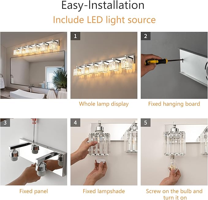 - [Easy Installation] This is designed for American Standard junction boxes and does not require complicated installation procedures. All required parts are included in the package and extra replacement crystal strips are available. Note: For your safety, please install the vanity light under the guidance of an electrician.