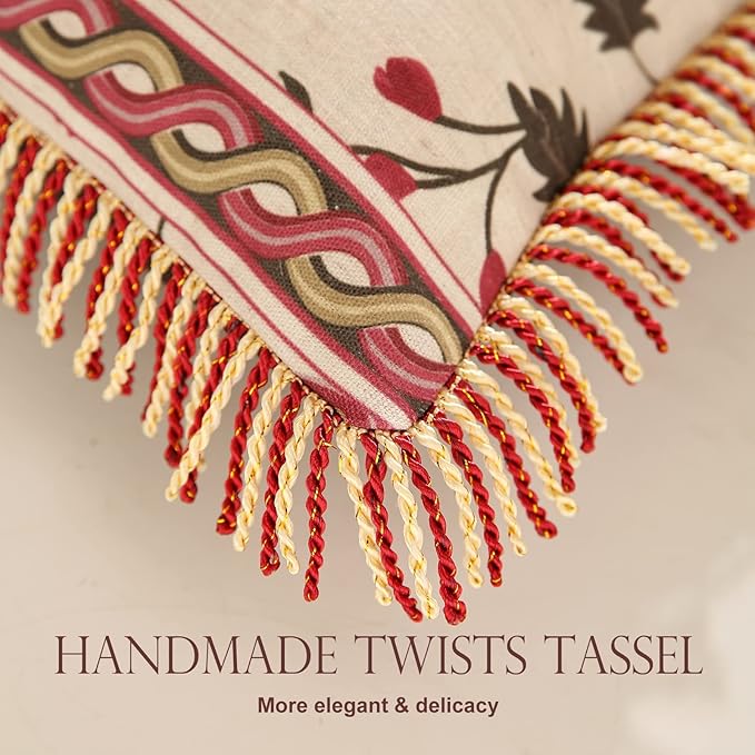 patdrea Designer Throw Pillow Covers Set of 4,Vintage Red Linen Pillowcases with Flower and Birds Pattern Pillows Cover for Couch,Farmhouse Decorative Cushion for Bed Living Room Outdoor Car