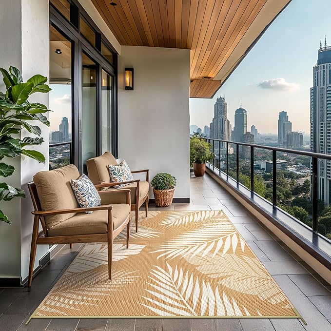 - Palm Leaf Design & Double-Sided Pattern: GENIMO reversible fall outdoor rug is designed with a double-sided pattern, completing the unique layout of multiple palm leaves. The 2 shades of brown and beige achieve the ultimate fusion. Either side can blend perfectly with nature and look very full and comfortable, making it a versatile piece for fall decor