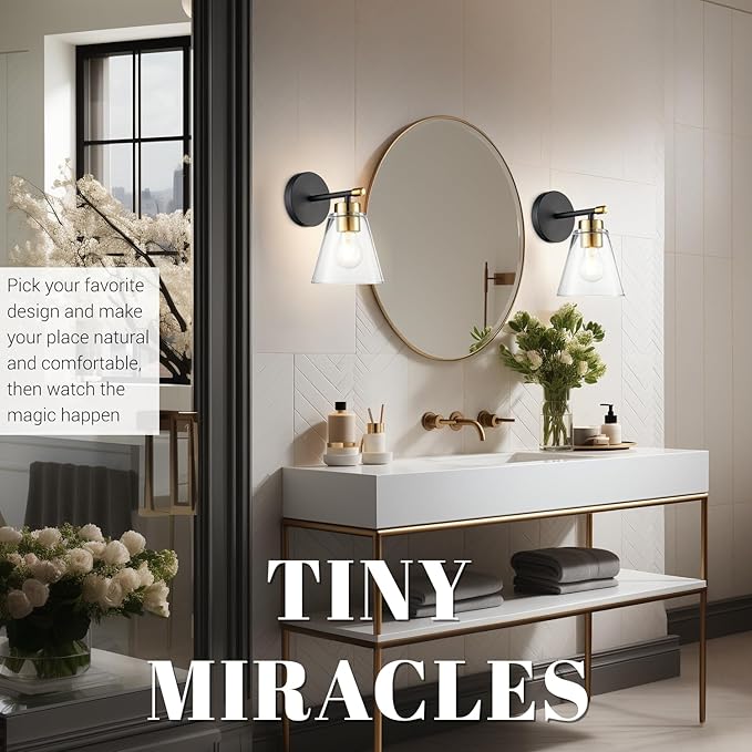 - 🦁【Easy to Install】Designed for hassle-free installation, our black and gold bathroom wall sconces come with all the necessary hardware and instructions, allowing you to effortlessly mount them to your desired location in minutes.