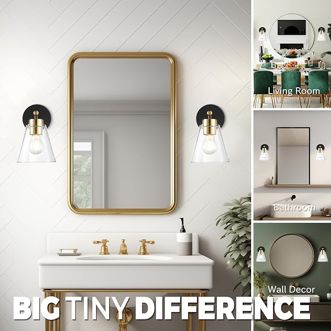 - 🦁【Durable Farmhouse Bathroom Wall Sconces Set of 2】 Constructed from high-quality materials, including sturdy metal frames and durable clear glass shades, these wall sconces for bathroom are built to last. Enjoy long-lasting performance and reliability of the indoor wall sconces in your bathroom for years to come.