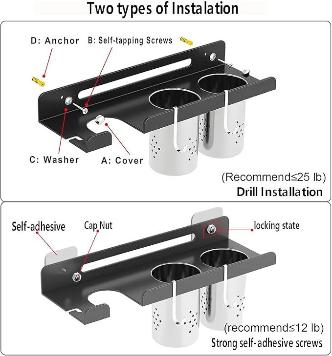 - Two Installation Methods:Junyuan Wall Mount hair dryer holder are designed for you with strong self-adhesive screws and hole-punching solutions, which can be quickly installed in as fast as 3 minutes, easily mount and secure this hair dryer organizer to your daily makeup and beauty location.
