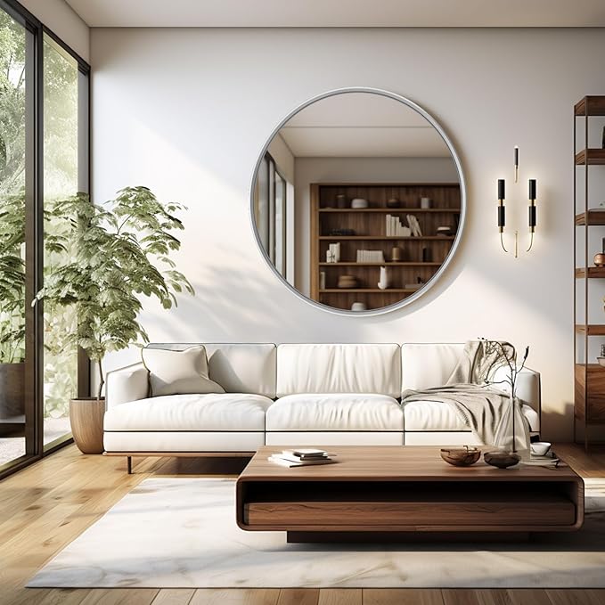 - High-quality Aluminum Alloy :Our 30-inch silver round mirror is crafted with durable aluminum alloy combined with an oxidation process. Its minimalist design and classic matte texture perfectly complement any room and match your home decor