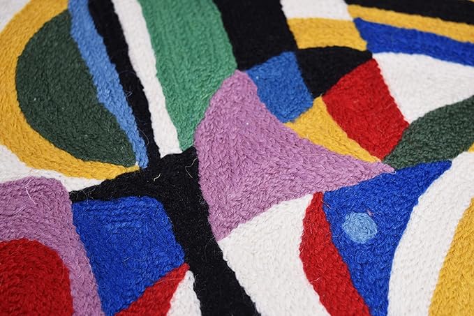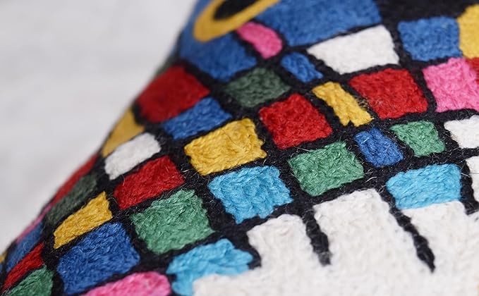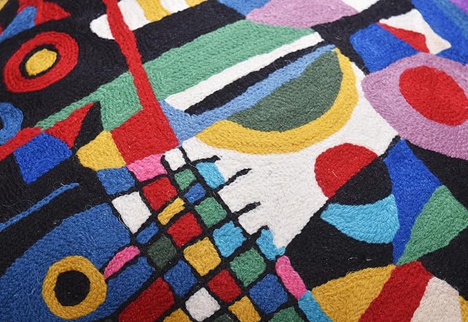 - ❤ Modern Throw Pillow Cover - Hand Embroidered: Our vibrant decorative pillow covers draw inspiration from Kandinsky's artistry and are meticulously hand-embroidered using soft wool. Our skilled artisans devote painstaking attention to detail, creating an extraordinary abstract pillow that enhances your home decor. An up-close look at this contemporary accent pillow reveals the exquisite craftsmanship of fine chain-stitch hand embroidery.