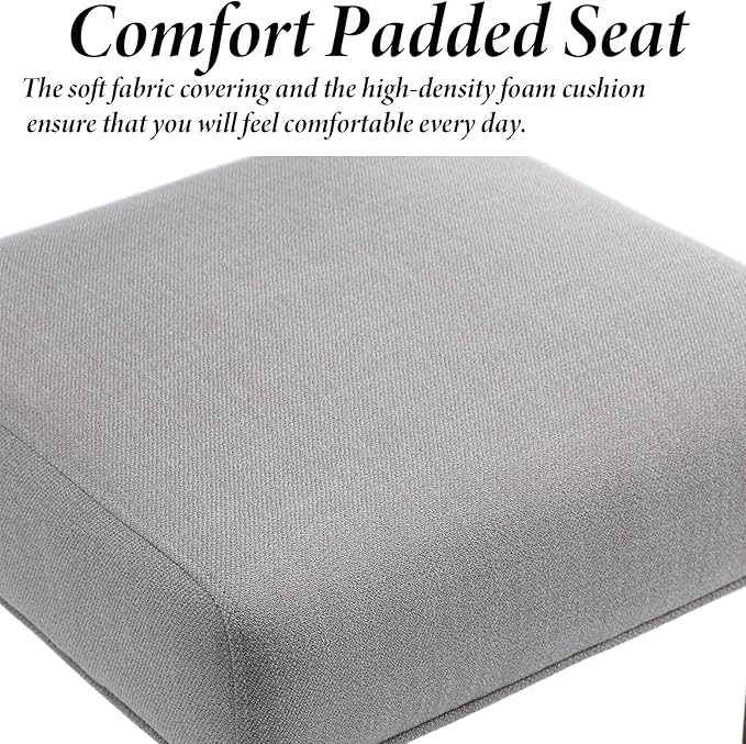 Kmax Farmhouse Dining Chairs Set of 2, Rustic Kitchen Chairs with Linen Fabric Seat and Woven Back, Vintage Accent Chairs for Dining Room, Living Room, Grey