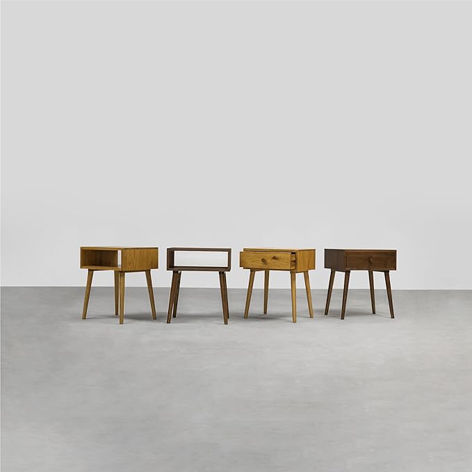NTC Solid Oak Lux Nightstand with Drawer, Mid Century Modern Side Table Bedroom, Bedside Furniture, Night Stand, End Table, Easy Assembly - Rustic Oak