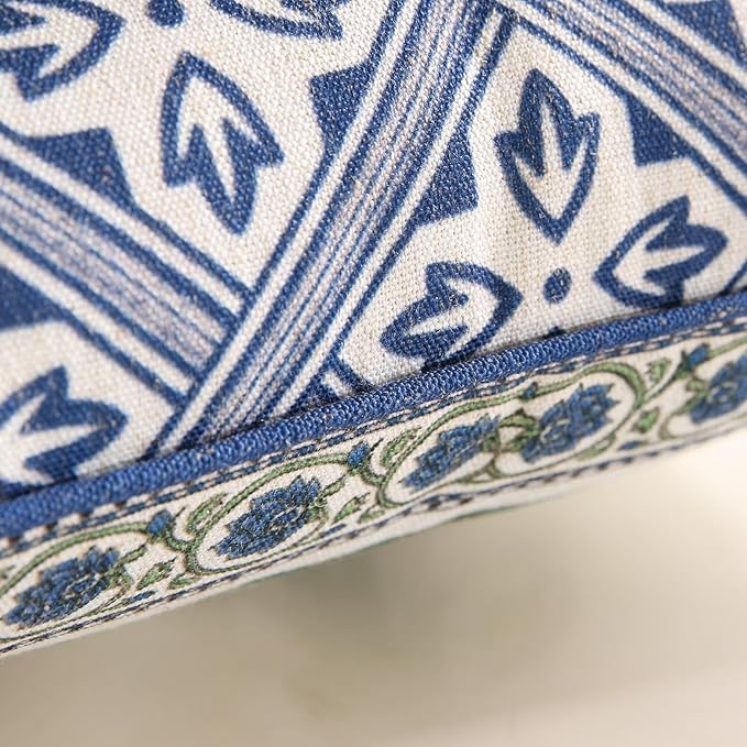 patdrea Designer Floral Linen Throw Pillow Covers,Blue French Cottage Flower Pattern Decorative Pillowcases Cushion for Bed Living Room Outdoor Car,Pack of 4