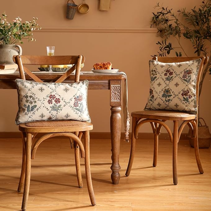patdrea Designer Throw Pillow Covers Set of 4,Euro Vintage Light Brown Linen with Floral Collection Pattern Pillow Cover,Decorative Square Lumbar Round Pillowcases Cushion for Bed Living Room Car