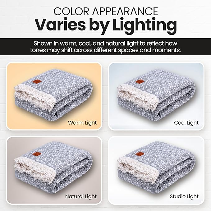 - CELEBRATE SUSTAINABLE STYLE: Made in Turkiye with recycled cotton, this cotton throw blanket brings eco-conscious comfort to your home; the soft weave and fringe detail give this woven blanket for bed a rustic, decorative touch that layers beautifully in any space