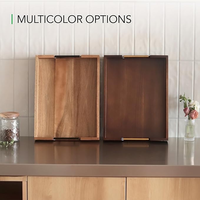 - Sleek and Functional Serving Tray: At 16.7 x 12.8 inch, this serving tray features metal handles for easy carrying; Its rich wood grain texture creates a harmonious aesthetic, making it a thoughtful and practical contribution