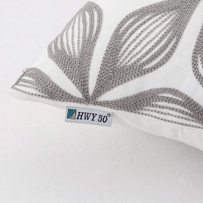 HWY 50 Grey Gray Decorative Throw Pillow Covers 18x18 Inch, Pack of 2 Embroidered Cotton Farmhouse Cushion Cover Pillow Case for Sofa Couch Living Room Bed Bedroon, Fashion Geometric Accent