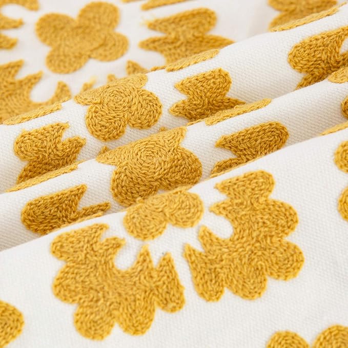 HWY 50 Mustard Yellow Decorative Throw Pillow Covers 18x18 Inch, Pack of 2 Embroidered Cotton Farmhouse Cushion Cover Pillow Case for Sofa Couch Living Room Bed Bedroon, Geometric Diamond Floral