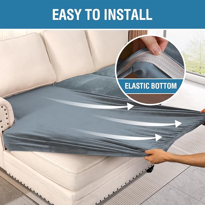 - INCREDIBLY COMFORTABLE VELVET: Products passed GLOBAL RECYCLED STANDARD certificate.This innovated stretch sofa slipcovers are constructed with 3 PIECES,including 1 Chaise cover and 2 individual cushion covers. Crafted from luxurious velvet plush fabric, feature thick, soft, smooth, anti-wrinkle, no fading, durable as well as highly stretch. Protect your cushion furniture from daily wears and tears, stains, kids, scratches from pet claws, dogs or accidental spills