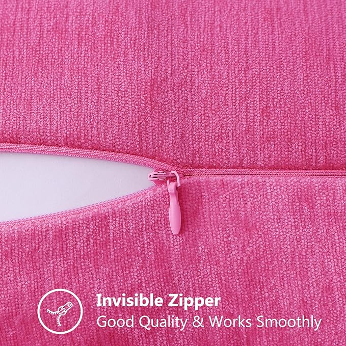 decorUhome Chenille Soft Throw Pillow Covers 20x20 Set of 2, Farmhouse Velvet Neutral Decorative Euro Pillow Covers with Stitched Edge for Couch Sofa Bed Home Decor, Hot Pink