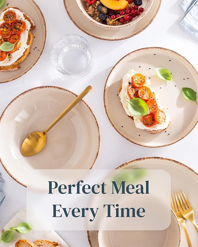 - ✅ BRING RUSTIC CHARM TO YOUR HOME: Elevate your dining experience with this 24-piece dinnerware set in rustic beige stoneware, adding a touch of elegance and coziness to your table setting.
