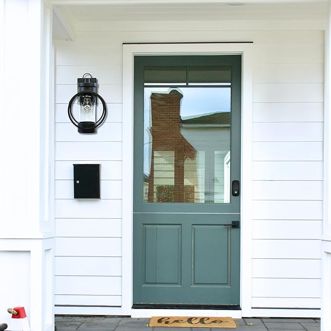 Muskoka Lifestyle Products Black Outdoor Weatherproof Wall Sconce Light Fixture, Rustic Porch Light, Entryway Light, Outdoor Wall Sconce Lantern
