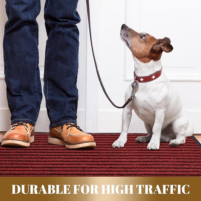 Yimobra Front Door Mat Outdoor Indoor Entrance, 100% Waterproof All-Season All Weather Doormat, Welcome Matt Outside Entry, Non Slip, Low Profile, Heavy Duty Patio Porch Floor Mats,47 x 32,Black Red