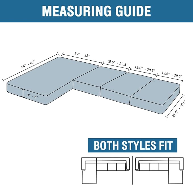 - UPGRADED THICKER: Each individual cushion cover fits up to 19.6-29 inch width, 21.6-30.5 inch depth, 3-8 inch thickness while the chaise cover fits up to 32-38 inch width, 54-62 inch depth, 3-8 inch thickness. Feature one-size-fits-most, kindly measure before ordering.