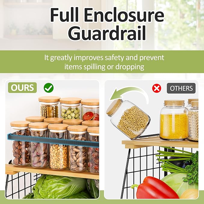 - STURDY, STYLISH & BUILT TO LAST: Made from thick, rust-resistant steel, this magnetic organizer basket features a heavy-duty frame that stays stable and won’t bend, break, even when fully loaded. The ventilated base keeps fruits and veggies fresh, while the wooden lid adds warmth and style. Guardrails and smooth edges ensure safe, spill-free storage.