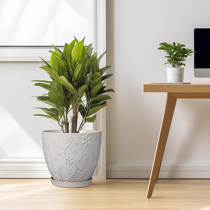 - Stylish Appearance: Our ceramic planter pot has a white main colour, a beautiful embossed petal and leaf pattern on the surface, elegant appearance making it ideal for home decor, garden decor and office decor