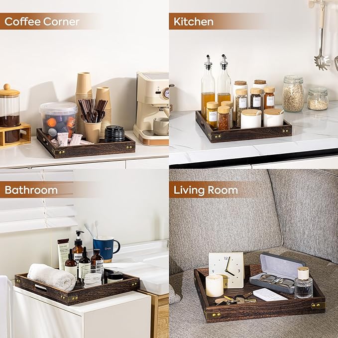 - 【Decorative Tray】The wood tray decorative perfectly combines style and function, which can provides services and decorations for the living room, bedroom, bathroom or entrance, ect. In addition to daily use, the decorative plastic tray is also a reliable helper for birthdays, parties, weddings and other special occasions.