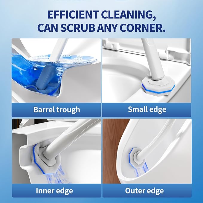 - Toilet Cleaning Head: The upgraded octagonal sponge head can clean hard to reach areas below the edge of the bowl and perform deeper and faster cleaning, making the toilet cleaner