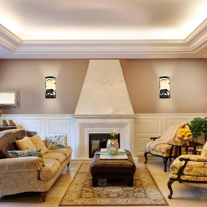 - Rustic Design: Black wall sconces set of two is crafted from durable matte black metal,featuring intricate forest elements and a bear silhouette,white parchment paper adds a soft,warm glow,enhancing industrial aesthetic of the vintage wall sconce
