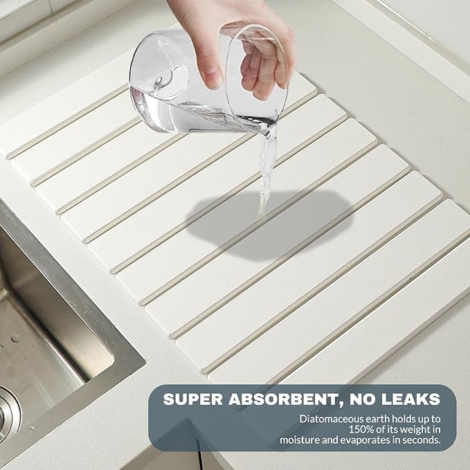 - Large Stone Drying Mat for Kitchen Counter - Crafted from advanced diatomaceous earth, our dish drying stone mat ensures your countertop stays dry and clean, it's a perfect addition to your kitchen sink accessories