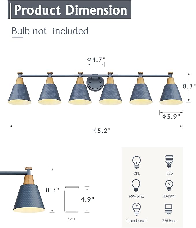- Refined & Reliable Illumination – ETL listed for safety, this blue bathroom vanity light combines vintage appeal with modern reliability. Featuring a 6 light bathroom vanity light design, it enhances ambiance while delivering dependable performance.