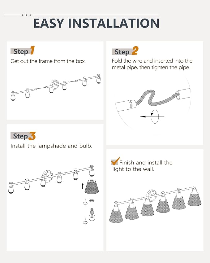 - Effortless Installation – Measuring 45.3” (L) × 6.5” (W) × 8.3” (H), these bathroom vanity lights over mirror come with all necessary mounting hardware for a hassle-free setup.
