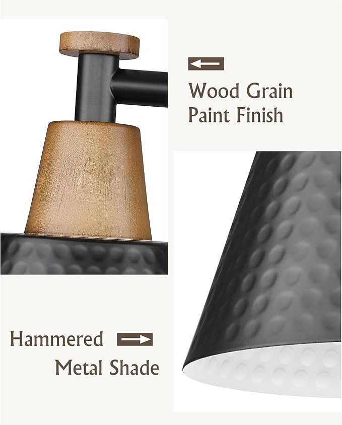 - Modern Industrial Elegance – The FEMILA bathroom lights feature a finely crafted hammered metal shade, seamlessly blending modern and industrial aesthetics to complement your space.